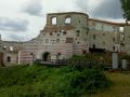 Widok na wieżę kościoła i fragment zamku Firlejów z pocz. XVI w.  (Janowiec)