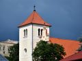 Widok na wieżę kościoła i fragment zamku Firlejów z pocz. XVI w.