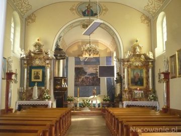 Widok na wnętrze kościoła p.w Podwyższenia Krzyża św.