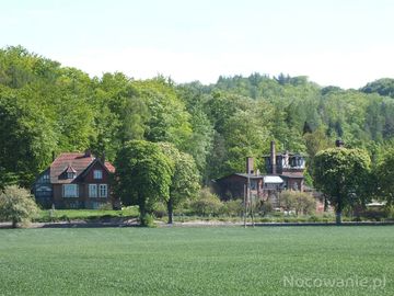 Widok na zakład ceramiki zabytkowej i willę "Kawalerów" (Kadyny)