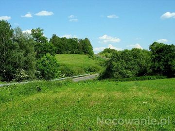 Widok na zrujnowany cmentarz. Zdjęcie zrobione od strony cerkwi