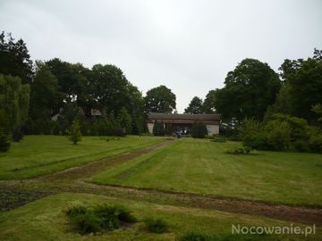Widok z głębi ogrodów w stronę plebani