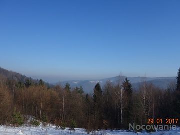 Widok z Jaworza na Kozówkę.(Dwa górskie osiedla Harbutowic) W głębi Sularzówka, szczyt pomiędzy Jasienicą a Trzebunią. (Harbutowice)