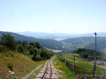 Widok z kolejki na Żar. Przy dobrej widoczności widać Tatry.