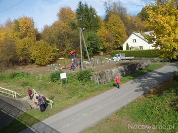 widok z mostu nad Sanem - na plac zabaw dla dzieci - tu w budowie.