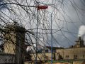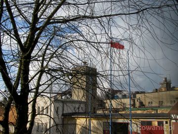 Widok z okien Urzędu Miasta na zakład płyt, Steico. Te białe obłoki wydostające się z kominów, to para wodna, główny mechanizm napedzający produkcję.