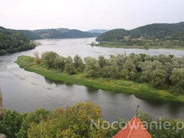 widok z tarasu wieży fortecznej, hen w oddali po prawej cypel wbiegający w koryto rzeki - tam kursuje prom do kościółka w m. Tropie - zapraszam do galerii i do (Wytrzyszczka)