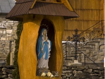 Wierchomla Wielka Drewniany kościół, d. cerkiew greckokatolicka ,kapliczka