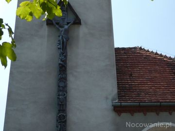 Wieża kościoła na niej Krzyż ludowego rzeźbiarz Pawła Brylińskiego. Takich pięknych Krzyży w okolicy jest wiele oby przetrwały bo są piękne i unikalne w skali Kraju.