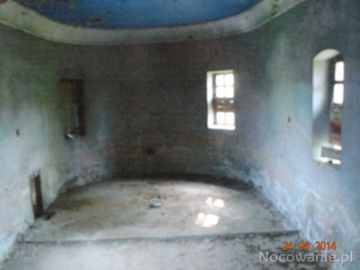 wnętrze cerkwi - jednoprzestrzenna, na rzucie wydłużonego prostokąta o zaokrąglonych narożach, zamknięta półkoliście.