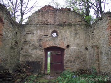 wnętrze cerkwi - w postępującej ruinie. - "Jesienią dach cerkwi na wielkim wietrze zakołysał i jak jastrząb uleciał (...) / i śpi łemkowski święty, jak puchacz biały, / w złotej dziupli ikony, samotny jak palec jego do góry podniesiony..." - Jerzy Harasymowicz. A za J.G. : "śpiewa cerkiewny chór / sklepienie rozjaśnia światło gwiazd / księżyc jak żyrandol wypełnia blaskiem opustoszałe mury".