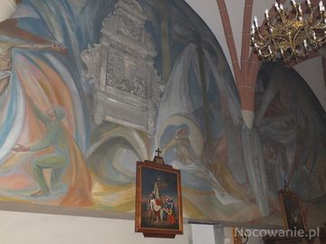 Wnętrze kościoła Św.Piotra i Pawła współczesny fresk Drogi Krzyżowej