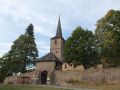Wnętrze kościoła z zachowanymi malowidłami z XIII w