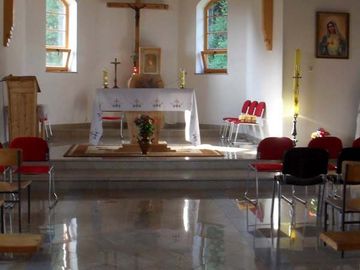 Wnętrze kościółka w porannym słońcu