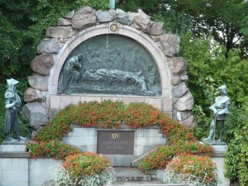 Wokół murów obronnych przepiękna Droga Krzyżowa na zdjęciu ostatnia stacja XIV. (Częstochowa)