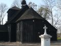 Wolno stojąca dzwonnica przy kościele.