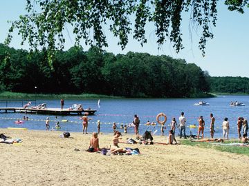 Wolsztyn, plaża w parku nad j. Wolsztyńskim.