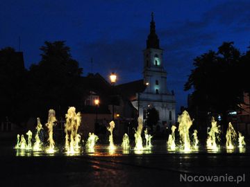 Wolsztyn, Rynek - fontanna i ul. Kościelna - Fara.