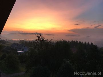 Widok wschodzącego słońca nad Soliną. Polecam pokoje gościnne ,,u Uli'' w Polańczyku na ul.Spokojnej.