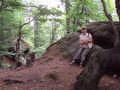 wśród olbrzymich bloków i płyt poukładanych w dziwaczne piramidy i głazy pojedynczo porozrzucane, pojawiają się interesujące odsłonięcia skalne - urwiste ściany (Przybyszów)