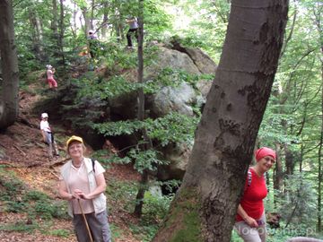 wśród olbrzymich bloków i płyt poukładanych w dziwaczne piramidy i głazy pojedynczo porozrzucane, pojawiają się interesujące odsłonięcia skalne - urwiste ściany, fantastycznie ukształtowane ostańce.