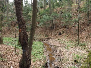 z Alei Wincentego Pola w sąsiedztwie potoku Bełkotka a po prawej zbocze Góry Przedziwna - 551m npm,przy potoku można spotkać stanowiska konwalii majowej - piękne białe kwiecie i tu uwaga ! nawet żeby bardzo byłoby się spragnionym : nie wolno ! nie można ! pić wody np. rękoma z potoku, gdzie konwalia rośnie, można nabawić się zatrucia, niestrawności - toksyczne bulwy i tak to skutkuje !