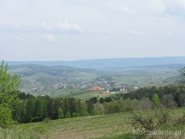 z grzbietu "Pod Uboczem" , za nami grupa wzniesień z najwyższą kulminacją Pogary - 641m npm i Dział zwany Patrola - 443m npm.