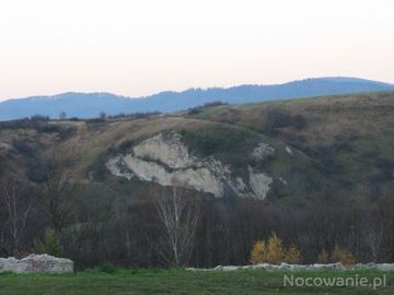 z tego wyrobiska / kamieniołomu zwanego "Gankiem" - na drugim brzegu Osławy, czerpano - pozyskiwano budulec przy wznoszeniu klasztoru, kamień wydobywano też z dna rzeki Osławy, na dalszym planie: las "Hanusiska". Warto dodać, że na tym odcinku Osławy jest kąpielisko zwane "Bednarka".