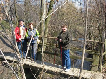 Z terenem wsi - majątek folwarczny - umożliwia przejście kładką położoną nad potokiem zasilającym stawy dworskie a dalej co oczywiste : wedle stawu grobla... (Kostarowce)