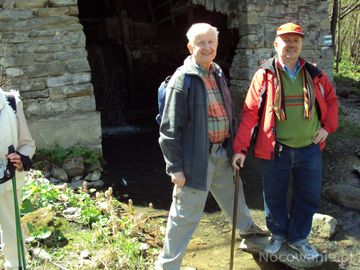 za szlakiem pieszym zielonym, na rogu budynku: widoczne oznaczenie szlaku.