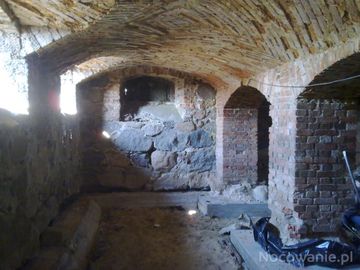Zabytkowa piwnica w spichlerzu w Dyblinie. Sklepienie kolebkowe z lunetą. Stan 2011. (Dyblin)