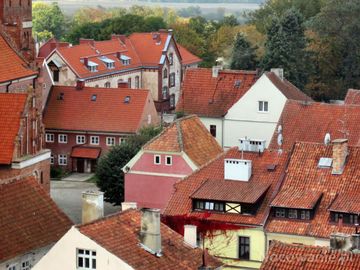 Zabytkowe kamienice reszelskiej starówki-widok z wieży zamku. (Reszel)