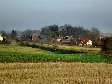 Zachodnia strona Pieckowa,na pierwszym planie widzimy fragment dawnej lini kolejowej,już bez szyn, prowadzącej do dawnej Stacji kolejowej w Pieckowie,relacji Kę (Pieckowo)