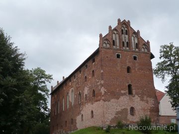 Zamek wzniesiony przez Krzyżaków w 1344-1391,na zdjęciu jedna część zamku zwana Dom Wielki,od strony południowo-zachodniej na piwnicach starego zamku dobudowano współczesny zamek siedziba Urzędu Miejskiego,strasznie zeszpecono stary zamek brak wyobraźni architekta,dlatego na zdjęciu pominąłem tę część.