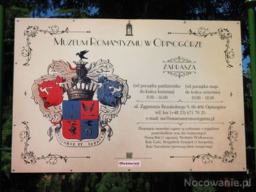 zaproszenie do zwiedzania Muzeum Romantyzmu - po wejściu przez bramę przy Domku z kolumnami. (Opinogóra Górna)