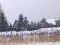 Zasypane śniegiem jezioro Łąke, a na nim wędkarze podlodowi. (Mała Wólka)