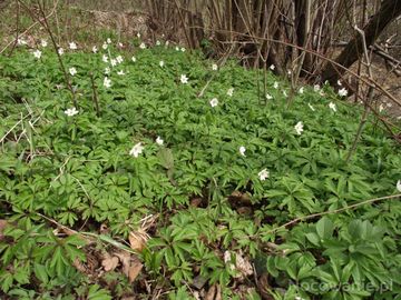 zawilec gajowy /anemon/ biały - geofit - urodą zachwyca, bujny - tam wiele stanowisk - Pod Grodziskiem. Jest też zawilec żółty - w m. Dziurdziów, koło dworu, w (Zwierzyń)