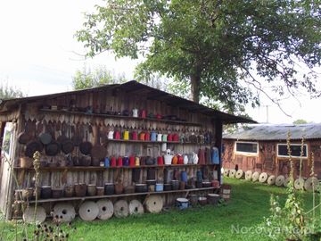 zbiory - skarby - eksponaty na prezentacji w skansenie - bogato, kolorowo, historycznie, a za posiadanie takich kół do żaren to podczas okupacji do obozu czy aresztu się trafiało...