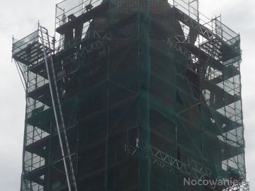 Zbliżenie wieży podczas remontu dachu. (Ostrów Wielkopolski)