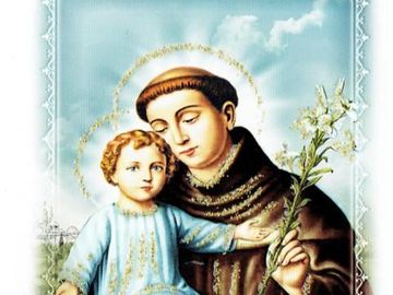 ze zbiorów prywatnych : Święty Obrazek przedstawiający św. Antoniego z Dzieciątkiem - patrona miejscowego kościoła.