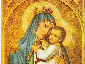 ze zbiorów prywatnych: Wizerunek Celu pielgrzymujących, Szkaplerz jest szatą Maryi, znakiem pokuty i nawrócenia, Szkaplerz oznacza także poświęcenie się Niepokalanemu Sercu Maryi i naśladowanie Jej cnót, szczególnie cnoty czystości i pokory.
