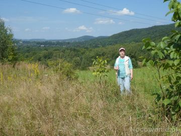 ze zbocza wierzchowiny - w dole odkryta trawiasta przestrzeń z kępami zakrzaczeń - to dawne czołgowisko dla pobliskiej jednostki wojskowej o symbolu taktycznym (Sanok)