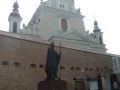 zespół klasztorny otaczają mury ze strzelnicami - częste były napady, najazdy i tak też było w 1657r. - tu wojska księcia siedmiogrodzkiego Jerzego Rakoczego z Węgier dotarły i zniszczeń dokonały, byli jeszcze Turcy, Kozacy, Moskale a ich wizyty niecne - pełne gwałtu, ognia i rozboju. Przy temacie : zapraszam do galerii mm. Manasterzec, Odrzykoń, Zboiska. N/z przy pomniku papieskim.
