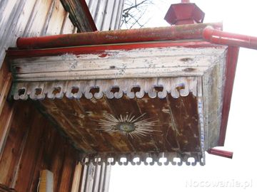 Złociste promienie rozsiewa Oko Opatrzności Bożej - na suficie baldachimu - wejścia do cerkwii. (Hołuczków)