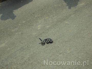 żmija zygzakowata - na drodze już po skręcie do cerkwi, tam w spokoju - bo nic nie jeździ - wygrzewała się na asfalcie. Żmija posiada na grzbiecie zygzak, tzw. (Międzybrodzie)
