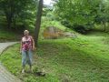 źródełko poświęcone Fryderykowi Chopinowi, z medalionem przedstawiającym popiersie kompozytora. Wyżej - w prześwicie - fragment platformy widokowej. (Sanok)
