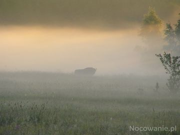 Żubry pasą się na łąkach w Teremiskach o poranku... (Teremiski)